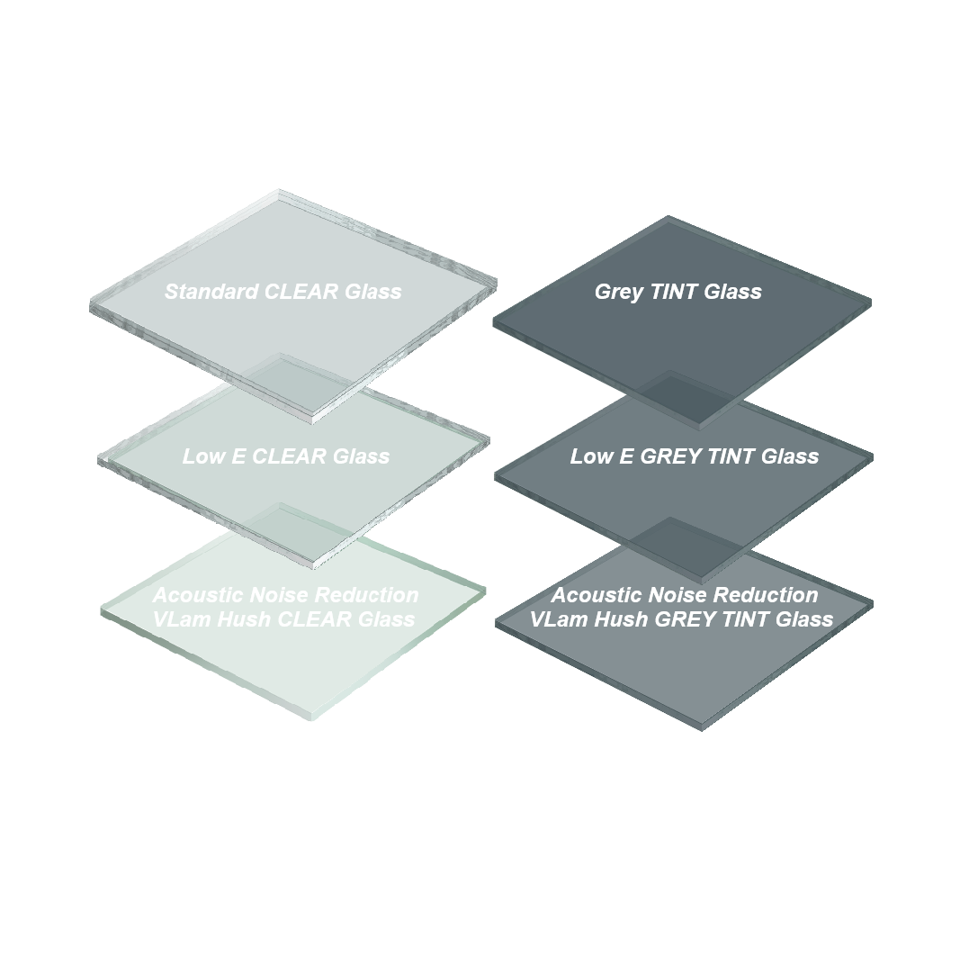 - Low E GREY TINT Glass - U Value: 3.6 SHGC: 0.50